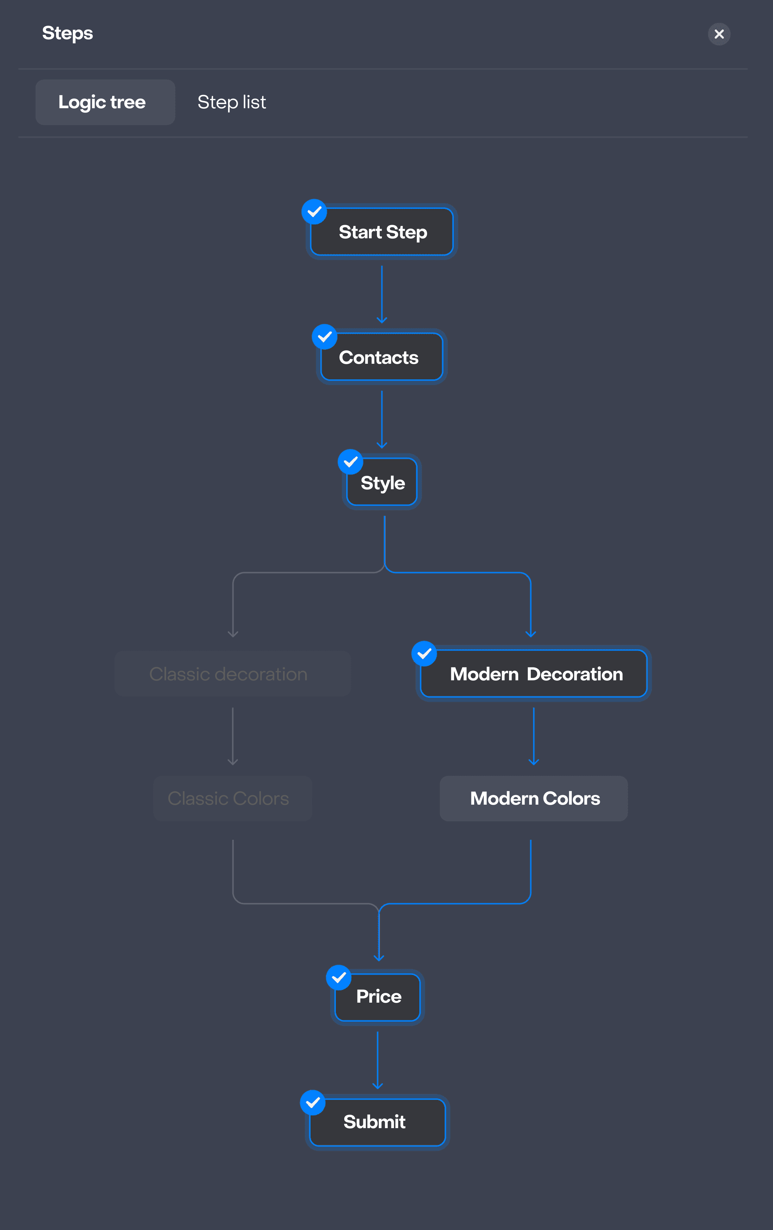 Every input controls the next questions, content, and steps including qualification and filtering.